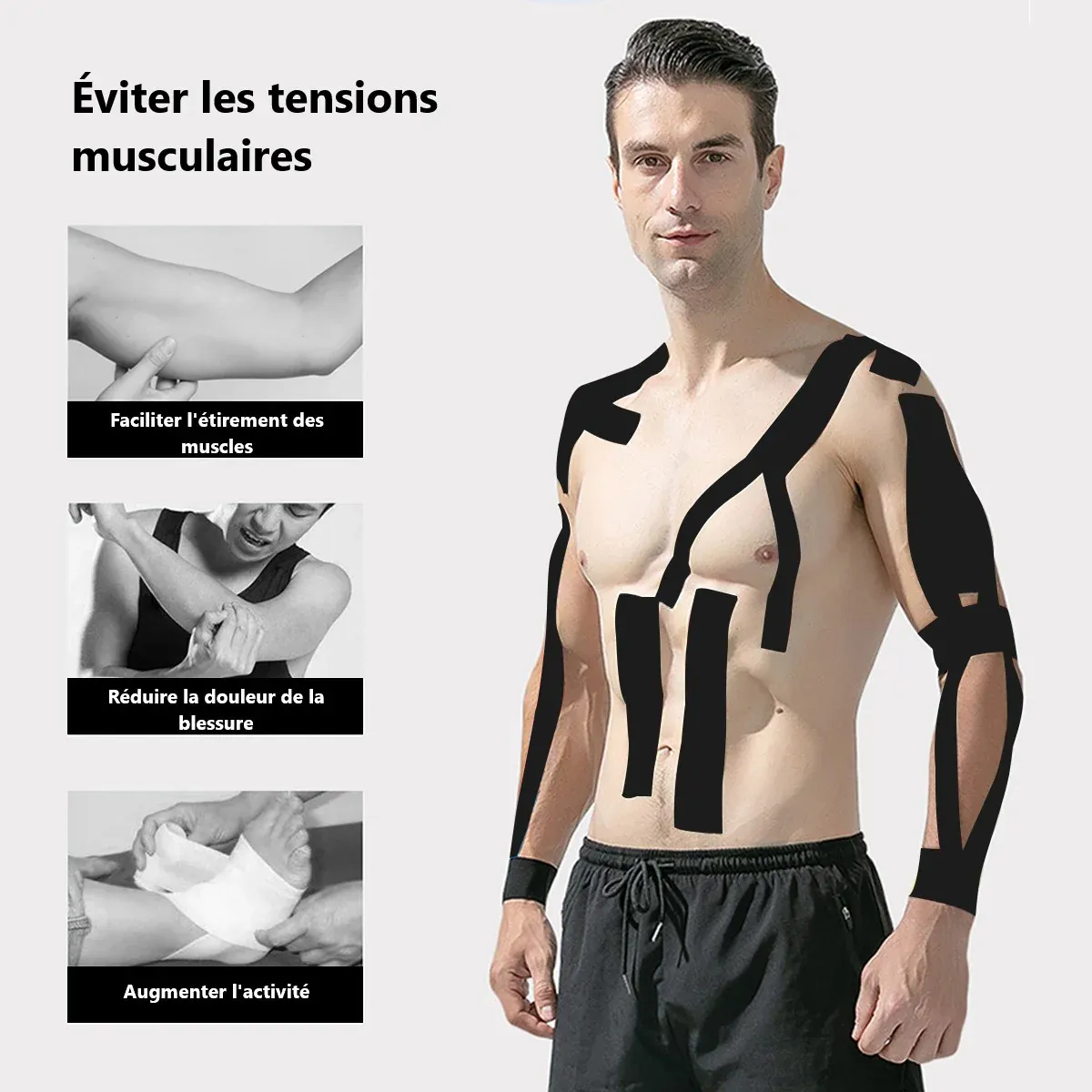 - Récupération : Appliquez la bande pour soulager les douleurs musculaires et favoriser une récupération plus rapide.