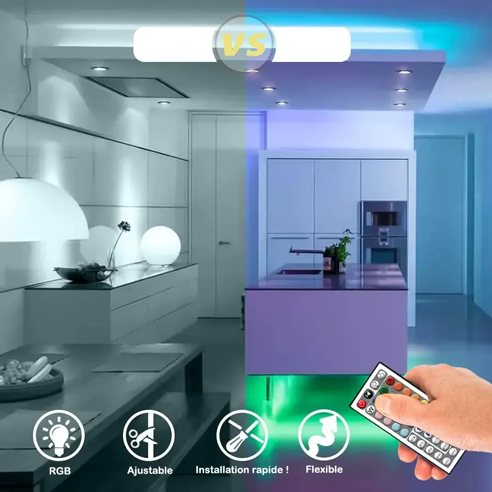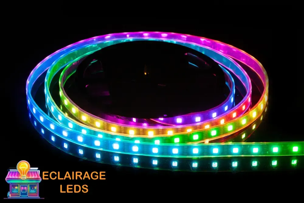 Vous trouverez également en vente un bandeau led RGB de 5m fonctionnant exactement de la même façon (capteur de son et bluetooth) à la différence qu’il devra être branché sur une prise de courant.