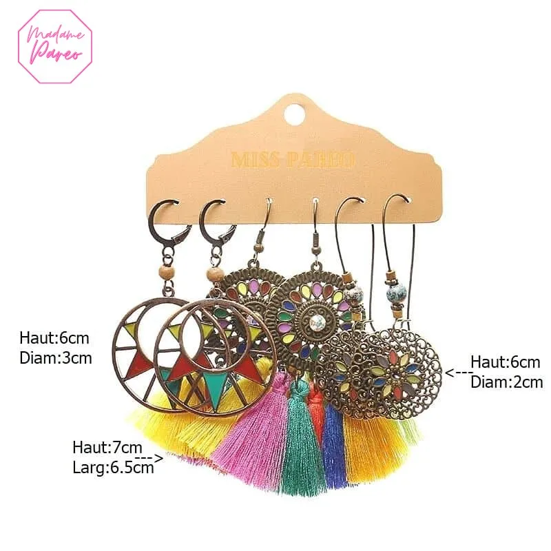 Pour les adeptes d’bijoux bohème généreusement agrémentés de breloques, ce trio de boucles d’oreilles plumes vous ravira. Chaque pièce unique offre un assortiment de pendants variés, des plumes aériennes aux franges de coton, sans oublier de fines chaînettes. Avec ces options diversifiées, changez de style selon vos envies pour une allure toujours renouvelée et distincte.