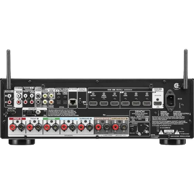 Récepteur Denon 7.2 canaux Wifi | Bluetooth – 80W par canal – 20 Hz à 20 kHz – THD 0.08% – HEOS intégré – 8K AVR – 3 x entrée HDMI 2.1 8K – Audio 3D – 6 x HDMI – Dolby Atmos – Compatible avec Dolby Vision – HDR/HLG/BT.2020 – Noir
