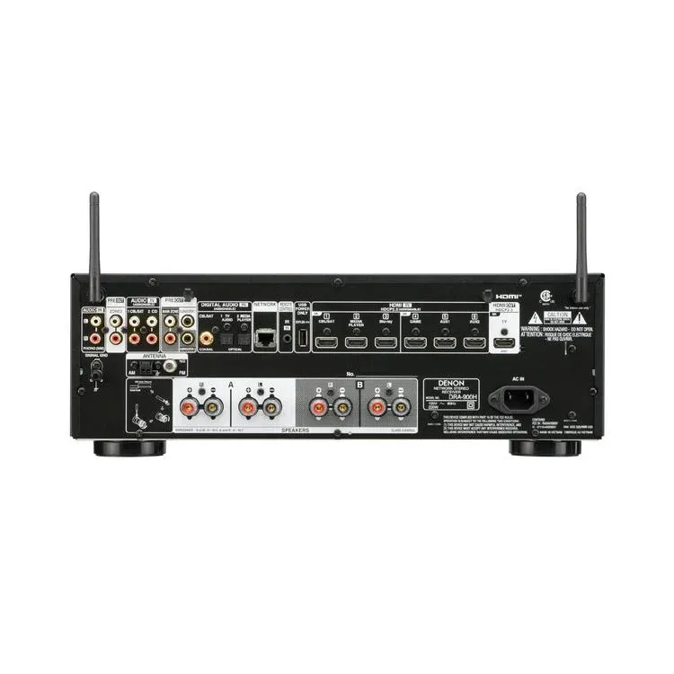 Récepteur stéréo 8K DENON | 2.2 Canaux – Intercommunication HDMI Ultra HD 8K – Dolby Vision – HDR10+ – HEOS intégrée – Bluetooth – Air Play 2 – Musique sans fil – Radio FM/DAB+ – Bornes d’enceintes A/B – Entrée phono – 5 Entrées HDMI – 2 Pré-sorties de caisson de basses – Noir
