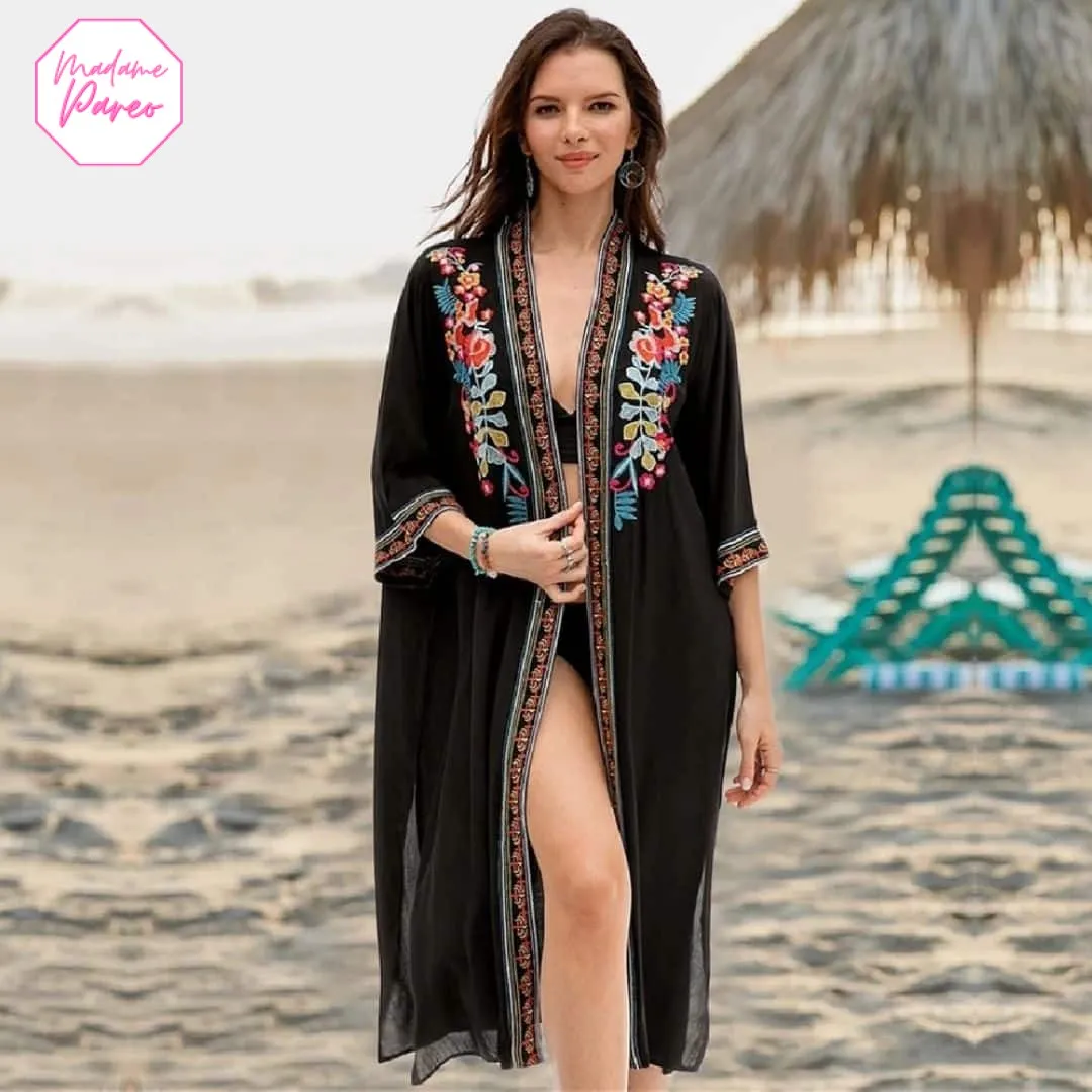 Quand il s’agit de se détendre sur le littoral, rien n’équivaut au confort qu’offre notre Kimono de Plage Bohème Ample. Imaginez-vous, cheveux aux vents, avec ses manches flottantes et sa coupe arrivant élégamment à mi-jambe. Ce vêtement est conçu pour vous protéger des rayons UV, en complément de votre crème solaire fétiche, finies les craintes de brûlures désagréables sous le soleil.