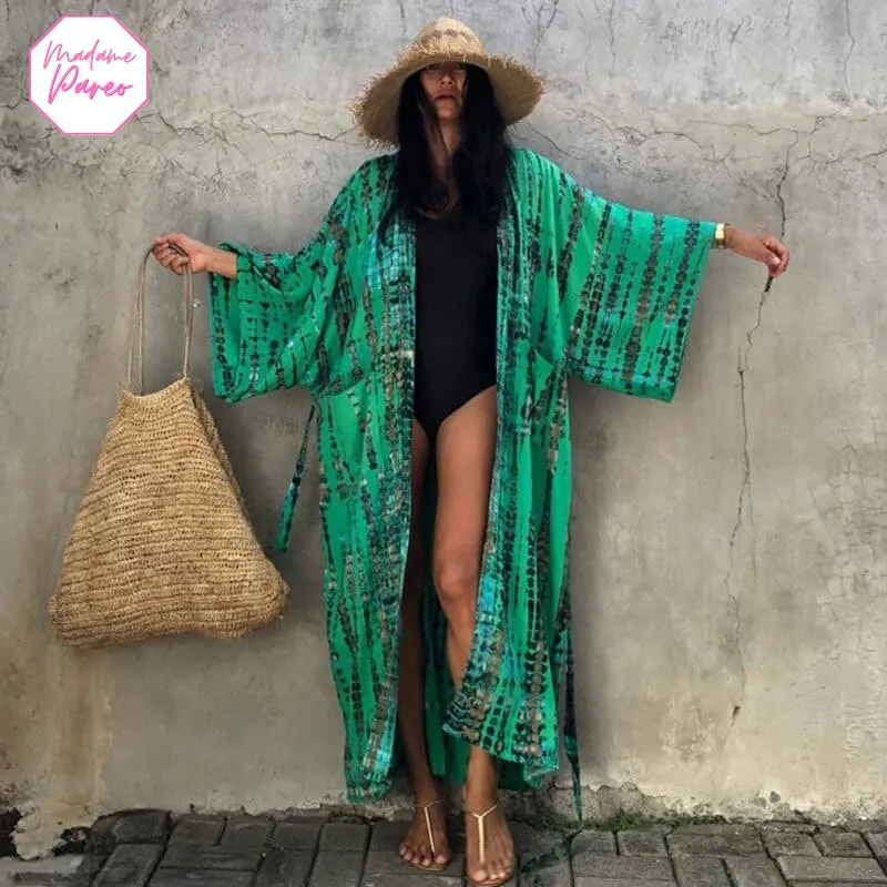L’engouement pour les coupes larges déferle sur la scène fashion. Et lorsqu’il s’agit de vêtements balnéaires, cette ampleur offre une protection idéale contre les rayons UV tout en laissant l’air circuler pour un rafraîchissement bienvenu. Alors, c’est un grand « oui » pour ce kimono spacieux et trendy, parfait comme vêtement de dessus lors d’une fête sur la plage.