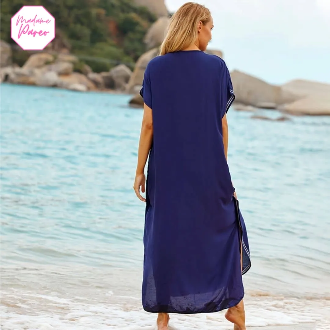 Conçue pour s’adapter à toutes les morphologies, cette robe de plage élégante se caractérise par sa taille unique et son flottement aérien qui vous laisse libre de vos mouvements. Fabriquée en coton léger, elle vous promet fraîcheur et confort toute la journée, sans risque de surchauffe. La robe se distingue aussi par ses manches longues, idéales pour protéger vos bras avec élégance.