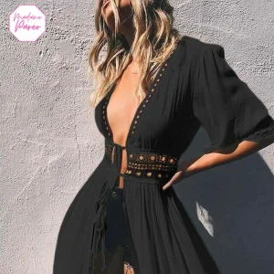 D’une finesse séduisante, l’attrait principal de cette Longue Robe de Plage à Broderie Ethnique réside dans son magnifique travail de broderie. Plongez dans l’univers des motifs floraux finement ouvragés, aux couleurs éclatantes qui boostent votre style estival en un clin d’œil. Ornant le devant et les manches de la robe de manière délicate, ces broderies sont parfaites pour n’importe quelle escapade – qu’il s’agisse d’une promenade décontractée, un dîner romantique ou une soirée chic. Elle s’harmonise à merveille avec vos pièces favorites de joaillerie et d’accessoires.