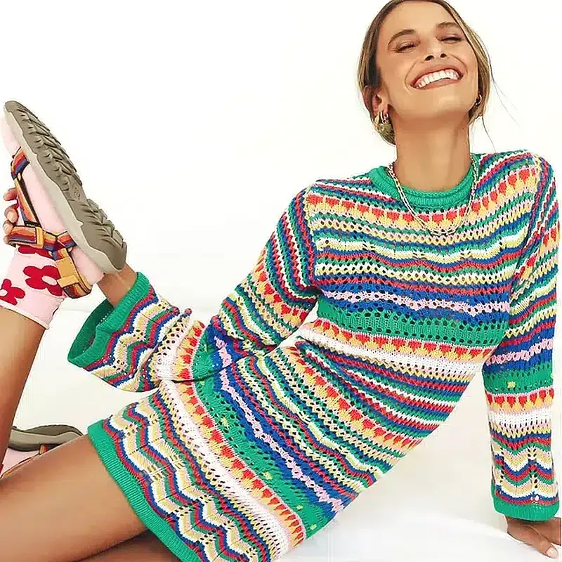 Lorsqu’il s’agit de confort, cette Robe Crochet Courte Colorée à Manches Longues est sans compromis. Ses manches longues spacieuses vous offrent l’amplitude de mouvement dont vous avez besoin sans négliger votre bien-être, même lorsque la brise du soir s’invite. C’est un plaisir à enfiler, et un véritable régal pour les yeux.