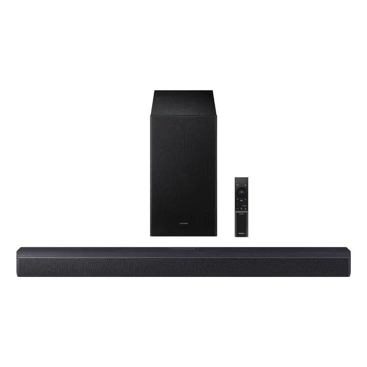 La barre de son Samsung HW-B550F offre une expérience sonore immersive 2.1 canaux avec un caisson de graves sans fil puissant de 6.5″.
