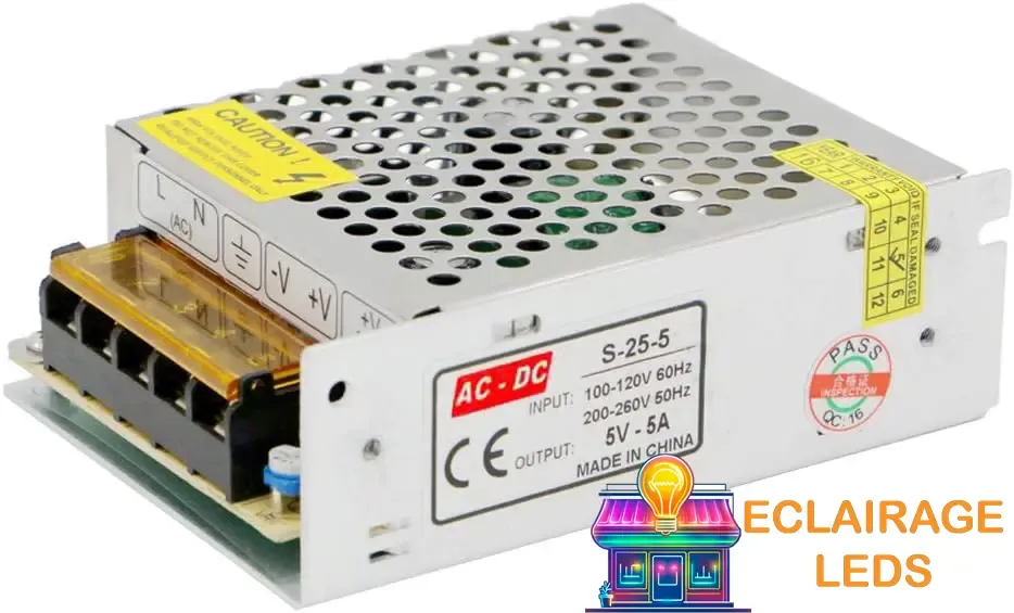 Ce transformateur spécial led sera le compagnon idéal de tous vos éclairages led en 5v. Il peut ainsi être utilisé sans risque pour alimenter vos ampoules led, bandeaux led ou tubes led fonctionnant en 5v DC.