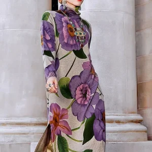 Robe Pull Fleurie à Col Roulé